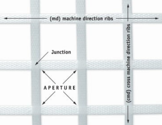 圖。土工格柵在制造過程的機器和跨機器方向上的肋骨形成